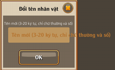 Để đổi tên các bạn vào MENU -> CHỨC NĂNG -> KHÁC -> ĐỔI TÊN NHÂN VẬT